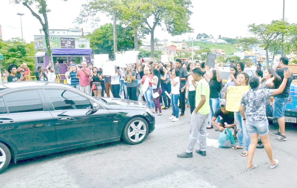 Estudantes durante protesto contra o corte do transporte para universitários