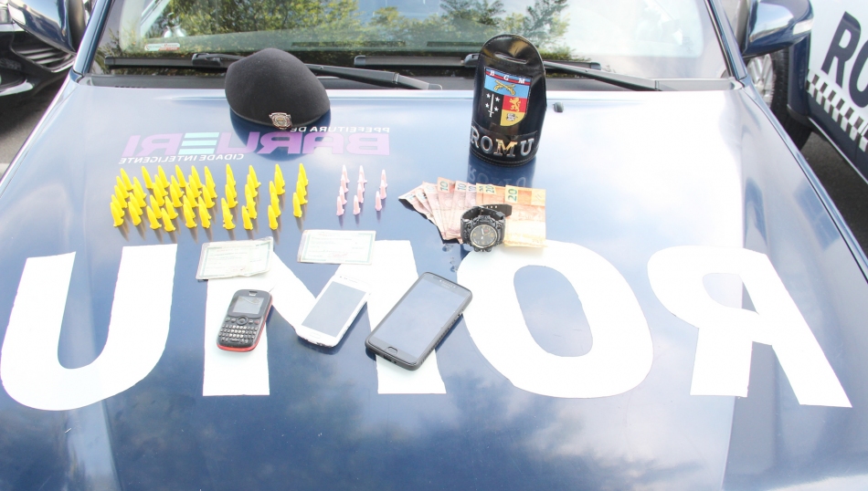 Em patrulhamento pelo bairro Engenho Novo, agentes de segurança de Barueri foram acionados via Central de Comunicação da Guarda Civil Municipal para atender um caso de tráfico de drogas. Na Rua Renato Gatti, os guardas avistaram dois jovens, que ao perceberem a aproximação da viatura tentaram fugir. Um deles conseguiu escapar e o adolescente F.S.G.D. (17 anos) foi capturado.