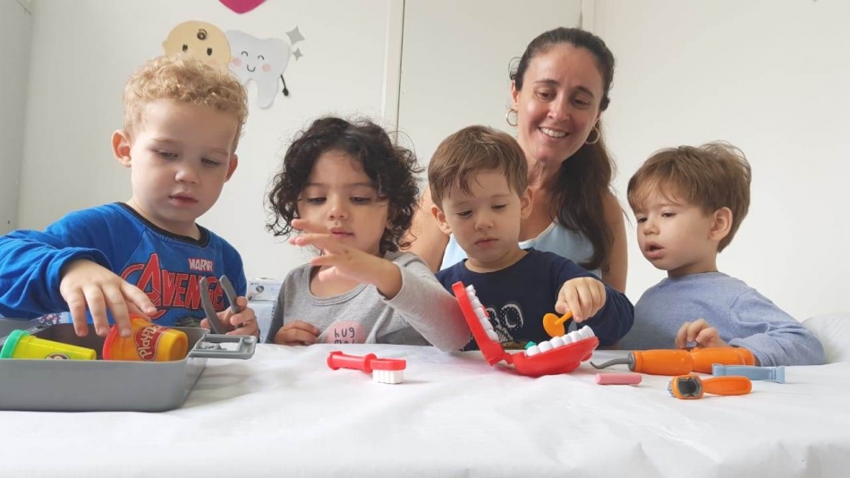 Outra grande vantagem é que durante o tratamento as crianças são acompanhadas pelos professores e ADIs (auxiliares de desenvolvimento infantil), sem a necessidade de que os pais se ausentem do trabalho, pois o consultório é montado de forma lúdica no próprio espaço social da criança, a escola.
