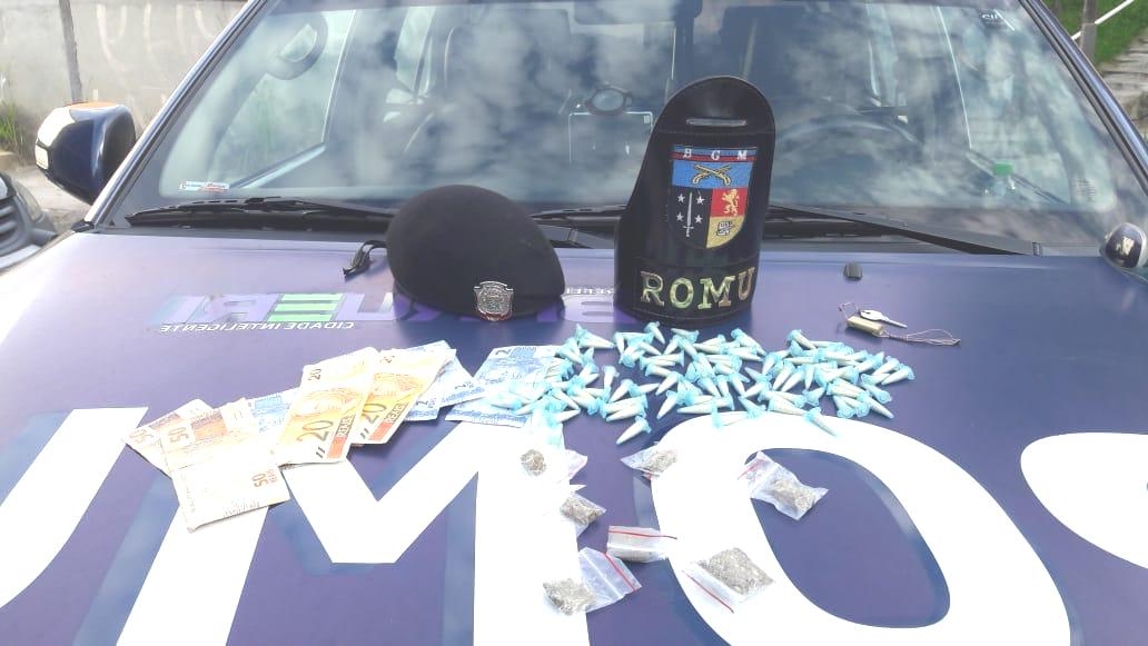 Já no Jardim Tupan, durante patrulhamento de rotina, agentes notaram que um indivÃduo tentou fugir após avistar a viatura. Durante a fuga o homem jogou uma sacola plástica na calçada. No pacote havia 28 unidades (24 em cápsulas e quatro em saquinhos plásticos) de cocaÃna, além da quantia de R$ 130. U.I.B permanece preso à disposição da Justiça, após o caso ser registrado na Delegacia.