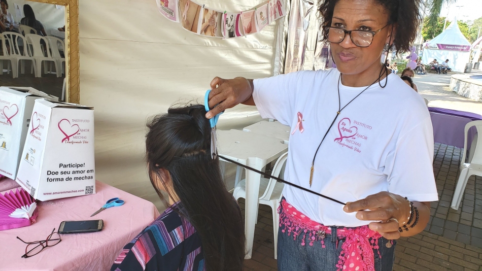 Só nessa ação foram doadas 104 mechas de cabelo. A coleta estava sendo realizada pelo Instituto Amor em Mechas, que envia perucas gratuitamente a pacientes em fase de quimioterapia do Brasil inteiro. Para tanto, é realizada uma técnica na qual uma pequena mecha de cabelos é retirada de forma a não comprometer o visual da doadora. A voluntária do projeto, Maura Mattos, que realiza o corte das mechas, conta que para fazer uma peruca são necessários 500 gramas de cabelos.