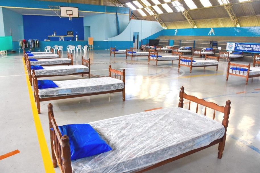 Dando continuidade as ações referentes ao enfrentamento da pandemia causada pelo novo coronavÃrus, a Secretaria de Desenvolvimento Social de Cajamar instalou um alojamento provisório para pessoas em situação de rua no Ginásio de Esportes de Jordanésia.