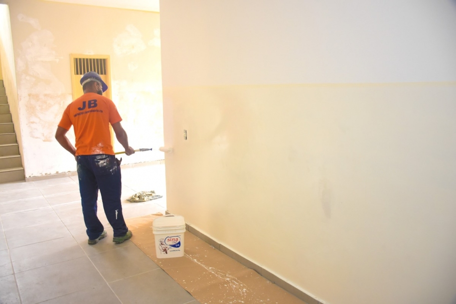 As equipes estão executando o serviço de manutenção em toda a rede elétrica e hidráulica, troca de piso, restauração das paredes de todas as salas, revisão do telhado para acabar com as infiltrações, pintura completa da escola, instalação de cobertura na entrada para passagem dos alunos e pintura da quadra.