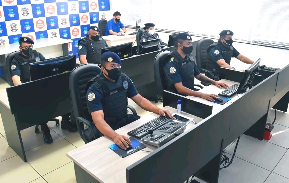 Agentes da Guarda Municipal no Centro de Monitoramento recém inaugurado