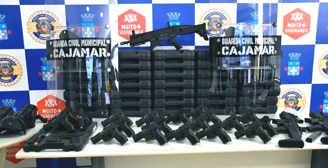 A Guarda Civil Municipal de Cajamar recebeu novos e modernos equipamentos. O efetivo agora também terá mais armamentos contendo 60 pistolas .40 TAURUS; 8 carabinas .40 TAURUS; 116 novos coletes; 10 mil munições .40; 18 equipamentos de choque completo (capacete, joelheira, cotoveleira, caneleira e o escudo) e 181 novos uniformes. Cada GCM recebeu 2 pares de kit com duas calças, duas camisetas, coturno, cinturões táticos e o colete.