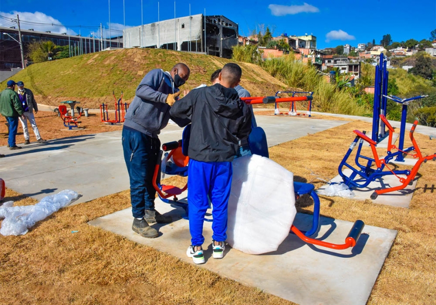 A Prefeitura de Cajamar, por meio da Secretaria de Infraestrutura e Serviços Públicos, realizou na última semana a instalação dos aparelhos da academia ao ar livre na nova área de lazer que está sendo construÃda na Rua Gilberto de Carvalho, ao lado da EMEB Odir Garcia, no Panorama, Polvilho. O local já conta com pista de caminhada, quadra poliesportiva, mesas para jogos e bancos.