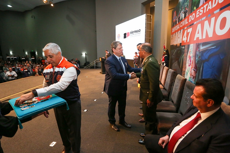 “A cada dia que passa, eu admiro mais os integrantes do nosso Sistema de Proteção e Defesa Civil, essa turma de colete laranja a quem eu quero pedir uma grande salva de palmas”, afirmou o governador Tarcísio de Freitas.