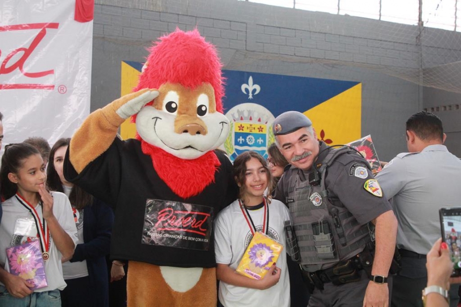 Como parte das atividades, os alunos produziram uma redação sob o tema “Proerd” e os autores dos melhores textos foram presenteados com medalhas e kits da instituição. Durante a cerimônia, os alunos também aproveitaram para fazer uma festa com o mascote do Proerd, o leão Daren, símbolo do programa. E no final, quando teve o juramento, os jovens prometeram cumprir os ensinamentos do Proerd, como não se envolver com drogas, estudar, respeitar o próximo afastando-se da violência e valorizar a própria vida, da família e da humanidade, sem depender das drogas.