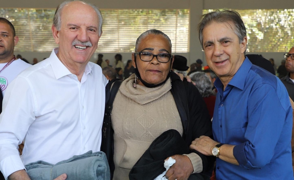 Furlan e Piteri distribuem peças da Campanha do Agasalho no Parque da Maturidade