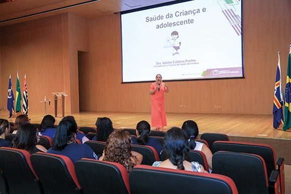 Na ocasião, a psiquiatra Natália Caldeira Pontes ministrou a palestra “Saúde da criança e do adolescente”, que consistiu na explicação dos fluxos de atendimento e oferta de serviços a essa faixa etária na cidade. A profissional, que também é coordenadora de Saúde da Criança e do Adolescente do município, falou do Pronto-Socorro Infantil, Unidades de Pronto Atendimento, Unidades Básicas de Saúde, Maternidade Santa Ana, entre outros equipamentos, e de como os agentes de saúde devem atuar nessa área.