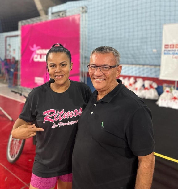 Professora Lu Domingues e vereador Tarcisio do Mercado no Aulão de Ritmos do Movimenta Cajamar