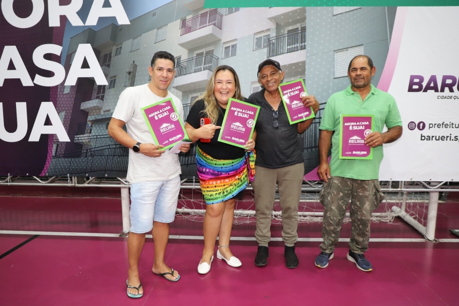 A Secretaria de Habitação de Barueri, através do Programa de Regularização Fundiária Urbana (Reurb), na última semana, durante evento realizado no Ginásio de Esportes Oswaldo Eleutério Júnior, entregou 90 títulos de propriedade a 106 famílias garantindo tranquilidade, segurança jurídica e estabilidade para 424 moradores da Vila Niterói, no Jardim Maria Helena. Os próximos contemplados serão os moradores da Vila Ana Néri, no Parque Imperial, que receberão seus títulos de propriedade no próximo dia 13 de maio.