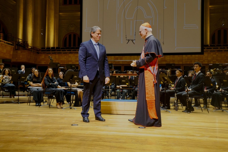 O governador Tarcísio de Freitas entregou na noite desta terça-feira (1), na Sala São Paulo, na capital, a Ordem do Ipiranga ao Cardeal Odilo Pedro Scherer, Arcebispo de São Paulo. A honraria é a mais elevada concedida pelo Estado de São Paulo e é entregue a cidadãos, brasileiros ou estrangeiros, em reconhecimento aos serviços prestados ao povo paulista e também por méritos pessoais. O evento também celebra os 70 anos da Catedral Metropolitana de São Paulo.