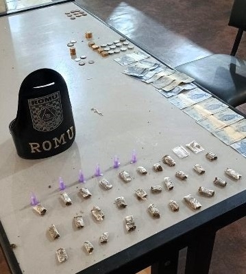 Durante patrulhamento pela Rua Santo André, a equipe da ROMU abordou dois indivíduos em uma viela. Ao perceber a aproximação dos guardas, um dos suspeitos tentou fugir, descartando drogas pelo caminho, mas foi alcançado. O segundo indivíduo estava em posse de uma pochete contendo dinheiro e parte dos entorpecentes.